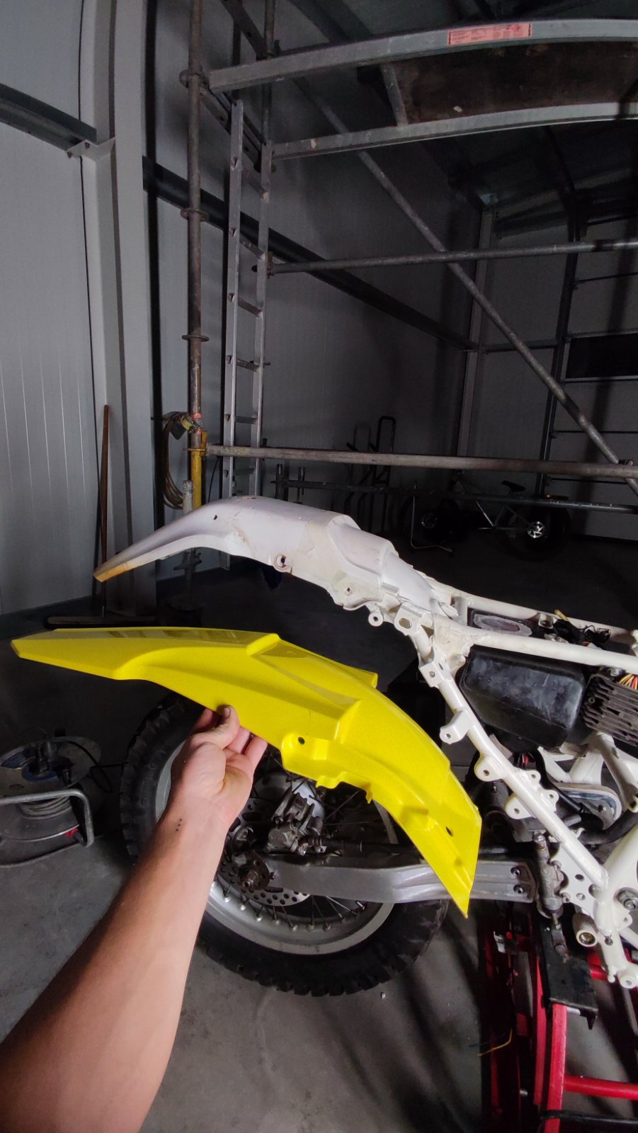 Die gleiche Kombi hatte ich vor Jahren auch mal.Die Kunststoffteile habe ich mit Mipa Kunststoff Haftprimer vorbehandelt, dann EP Grundierfiller und dann Acryllack, alles 2K Lacke.
