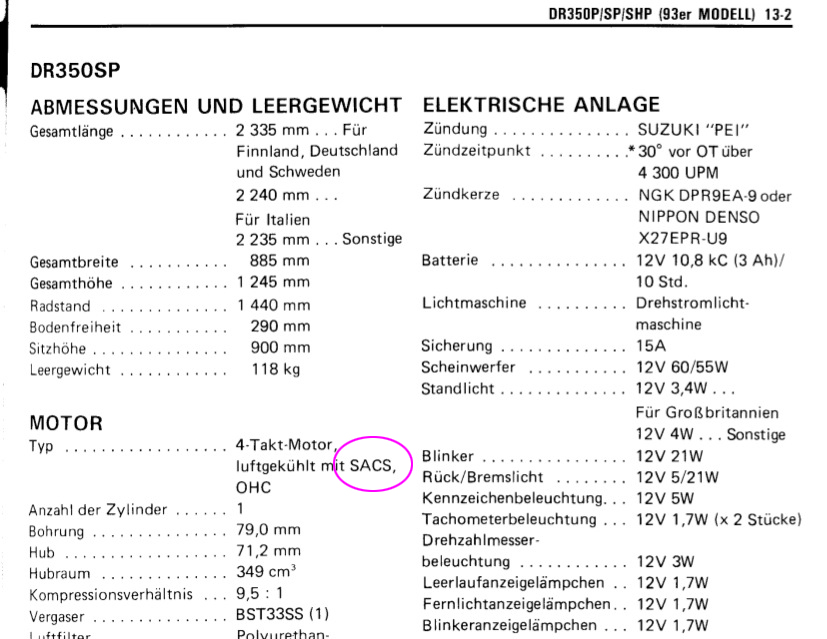 Nein die 350 hat kein sacs.
