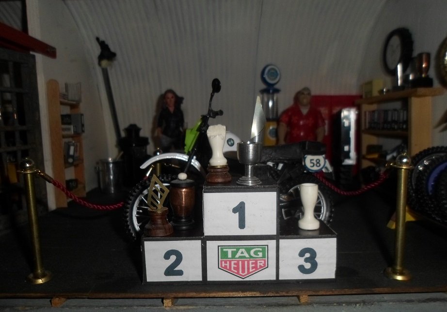 heute hatte ich die Zeit und die Muse dazu, endlich mal den schon vor einer halben Ewigkeit geplanten, richtigen Platz für die Pokale in der Miniatur-Werkstatt zu bauen.