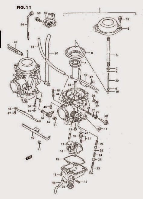 Die Motorradwerkstatt hat nicht viel ausgerichtet: Prinzipiell tippen die auf nen Vergaser, ne Überholung bei denen würde wohl locker 350€ kosten. Das sind ja schon 1/3 des Kaufpreises, deshalb hab ich die Maschine dann erstmal wieder mitgenommen (und 100€ für ne Stunde Fehlersuchen und ne neue Zündkerze dagelassen). Ich hatte schon vorher einen nanometer großen Riss in der Vergasermembran gesehen (allerdings nah am inneren Rand wo sowieso keine Belastung ist) und wollte mir den nochmal angucken. Beim Auseinanderbauen ist mir aufgefallen, dass ich die zwei Plastikplättchen (Nr. 3 u. Nr. 9 auf dem Bild) bei der Vergasernadel bis jetzt immer falsch zusammengebaut hab, weil ich auch die Demontage falsch dokumentiert hab. Also alles wieder richtig (??) zusammengebaut, eingebaut und den Hobel versucht heute morgen anzutreten. Läuft richtig scheiße, bleibt nur mit Vergaser am Leben und dreht nur ganz verzögert hoch, die Fahrt hab ich erst gar nicht gewagt.